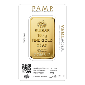 Każdy egzemplarz o wadze 100 gramów dostarczany jest w oryginalnym opakowaniu CertiPAMP, które pełni jednocześnie funkcję certyfikatu autentyczności. To przezroczyste, estetyczne etui zawiera numer seryjny oraz dane techniczne produktu, a dzięki szczelnemu zamknięciu zabezpiecza sztabkę przed uszkodzeniem i działaniem czynników zewnętrznych.