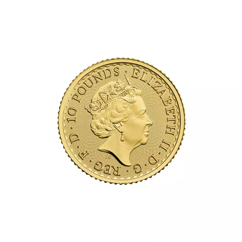 Britannia 1/10 oz zawiera 3,11 g czystego złota i stanowi świetne połączenie klasycznego wzornictwa z jakością wykonania, z której słynie brytyjska mennica.